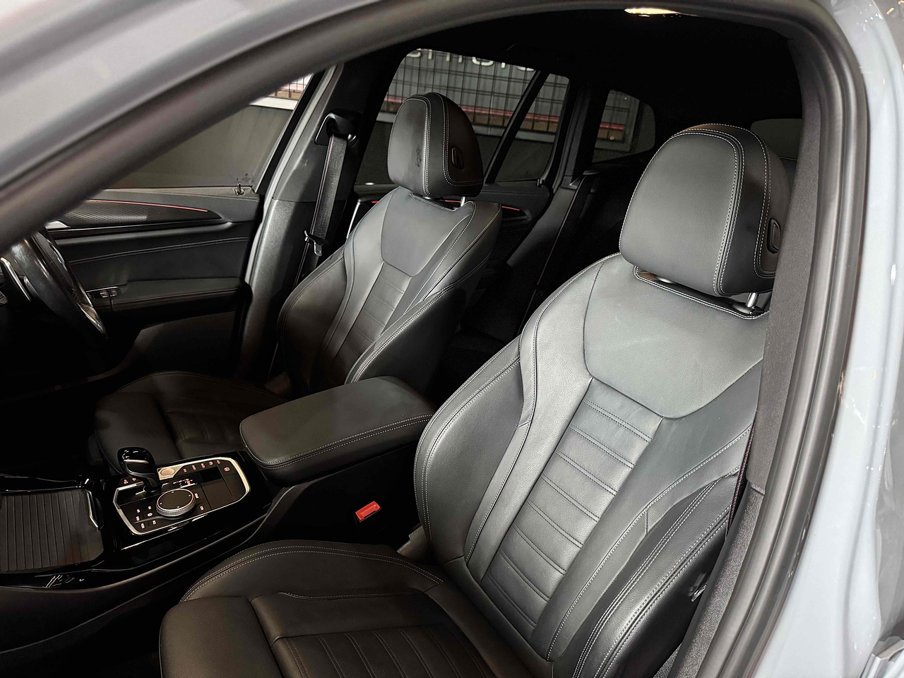 Beneath the bonnet lies a 3.0L petrol mild hybrid engine delivering an impressive 355bhp, launching from 0-62mph in just 4.9 seconds and reaching a top speed of 155mph. Despite its muscle, it still offers smart fuel-saving tech through mild hybrid support. The sleek Brooklyn Grey finish is enhanced by 21” M double-spoke alloys, Shadowline trim, and aggressive M Sport styling.
