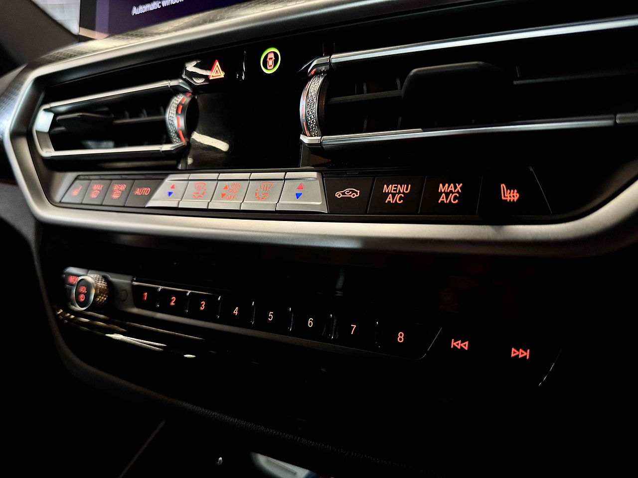 Inside, the luxury continues with Vernasca black leather upholstery, heated front sport seats, ambient lighting, and a Harman Kardon surround sound system for an immersive audio experience. Tech highlights include a widescreen BMW Live Cockpit, wireless charging, Reversing Camera, Driving Assistant Professional, and Laserlight Headlights for superior visibility.