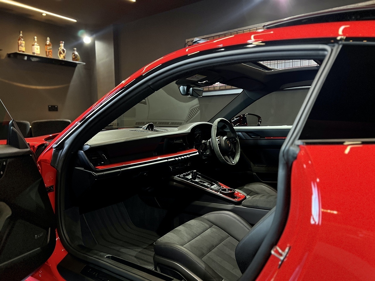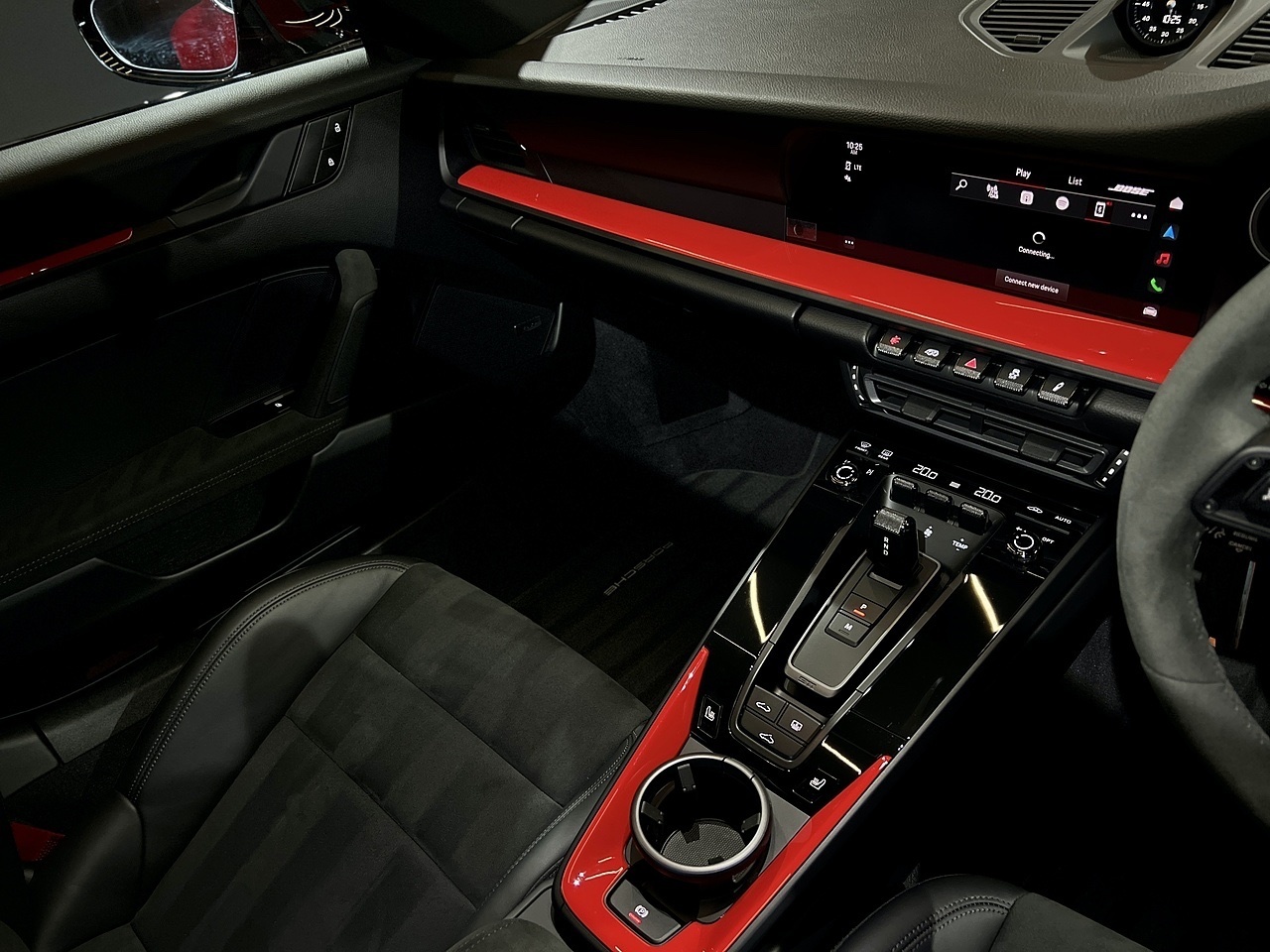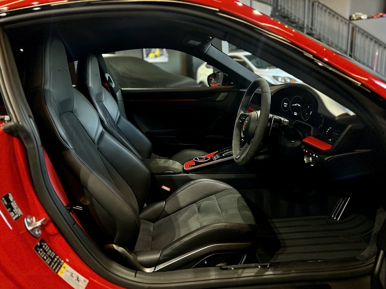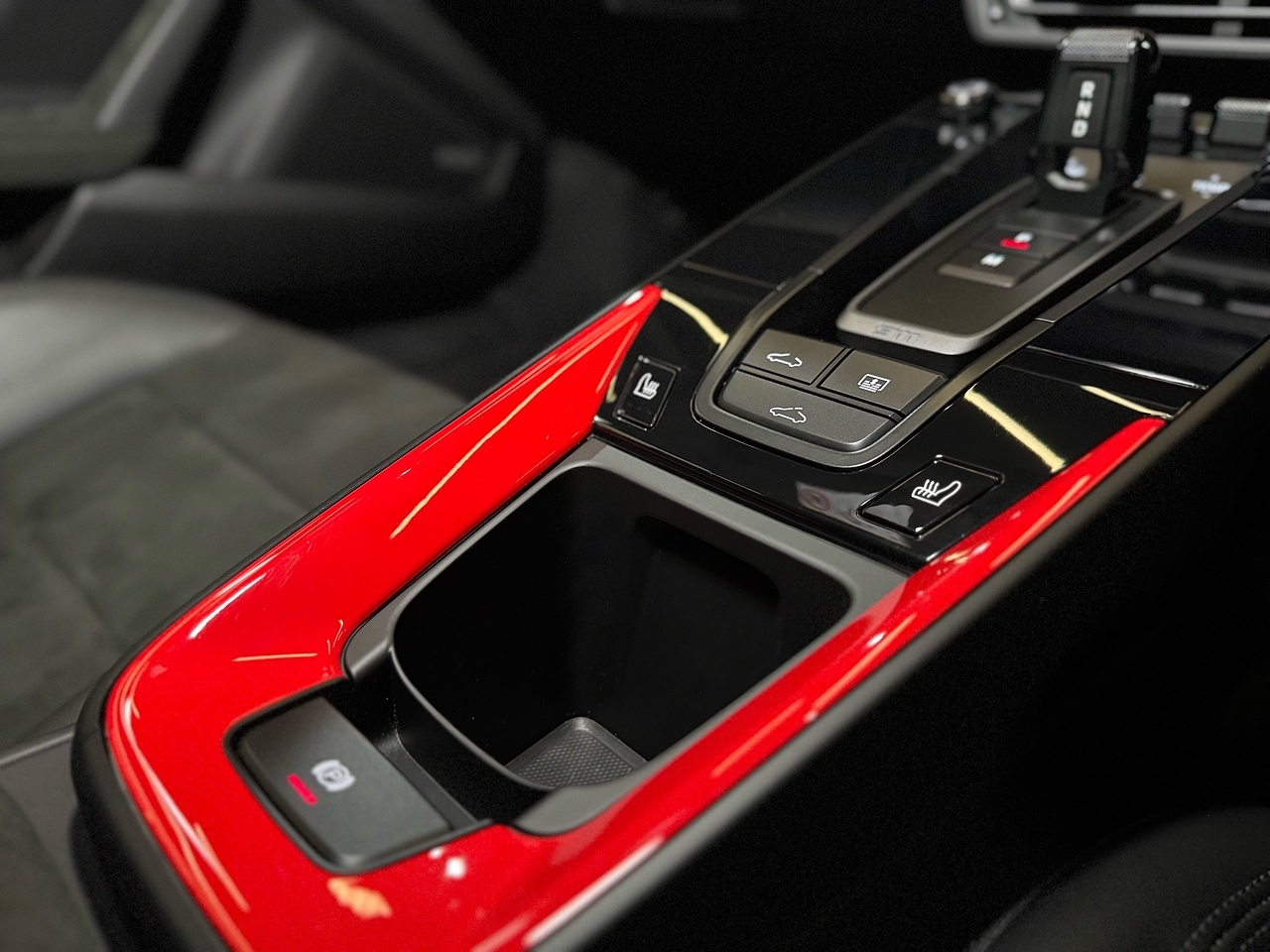 To compliment the Guards Red exterior paint, the car also features a High Gloss Black exterior Aero Pack and gloss black 20"/21" gloss black alloy wheels. To carry on with the theme, the car also features a gloss black Porsche bonnet decal and the exterior colour interior package.