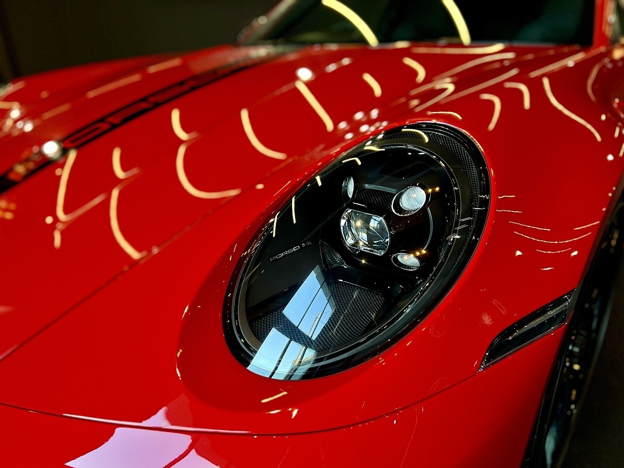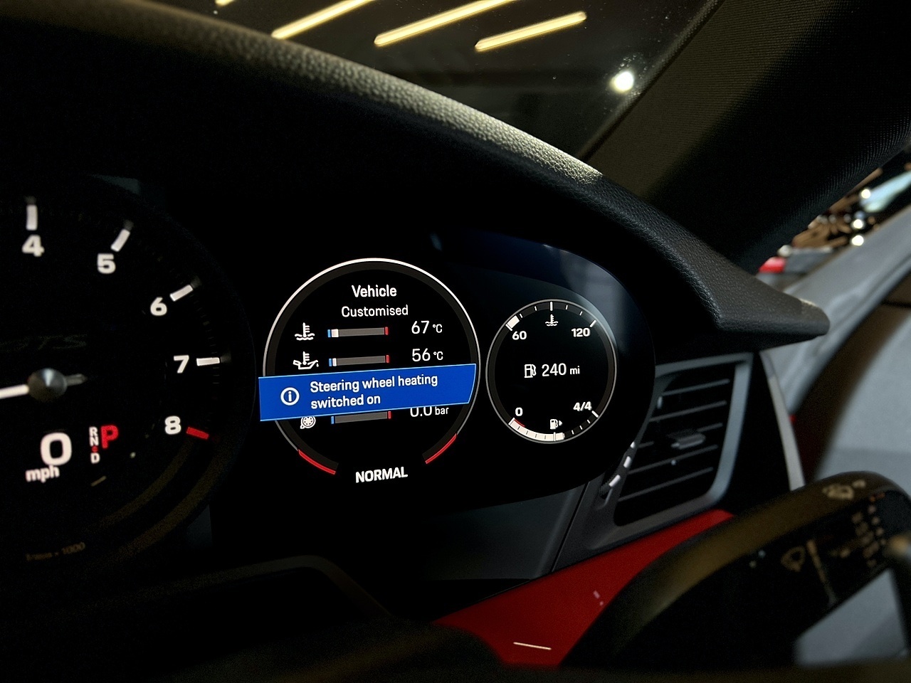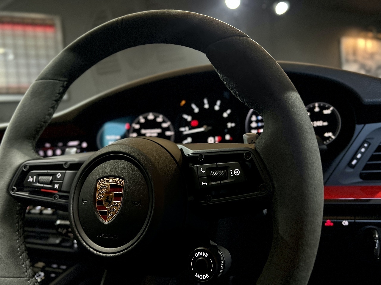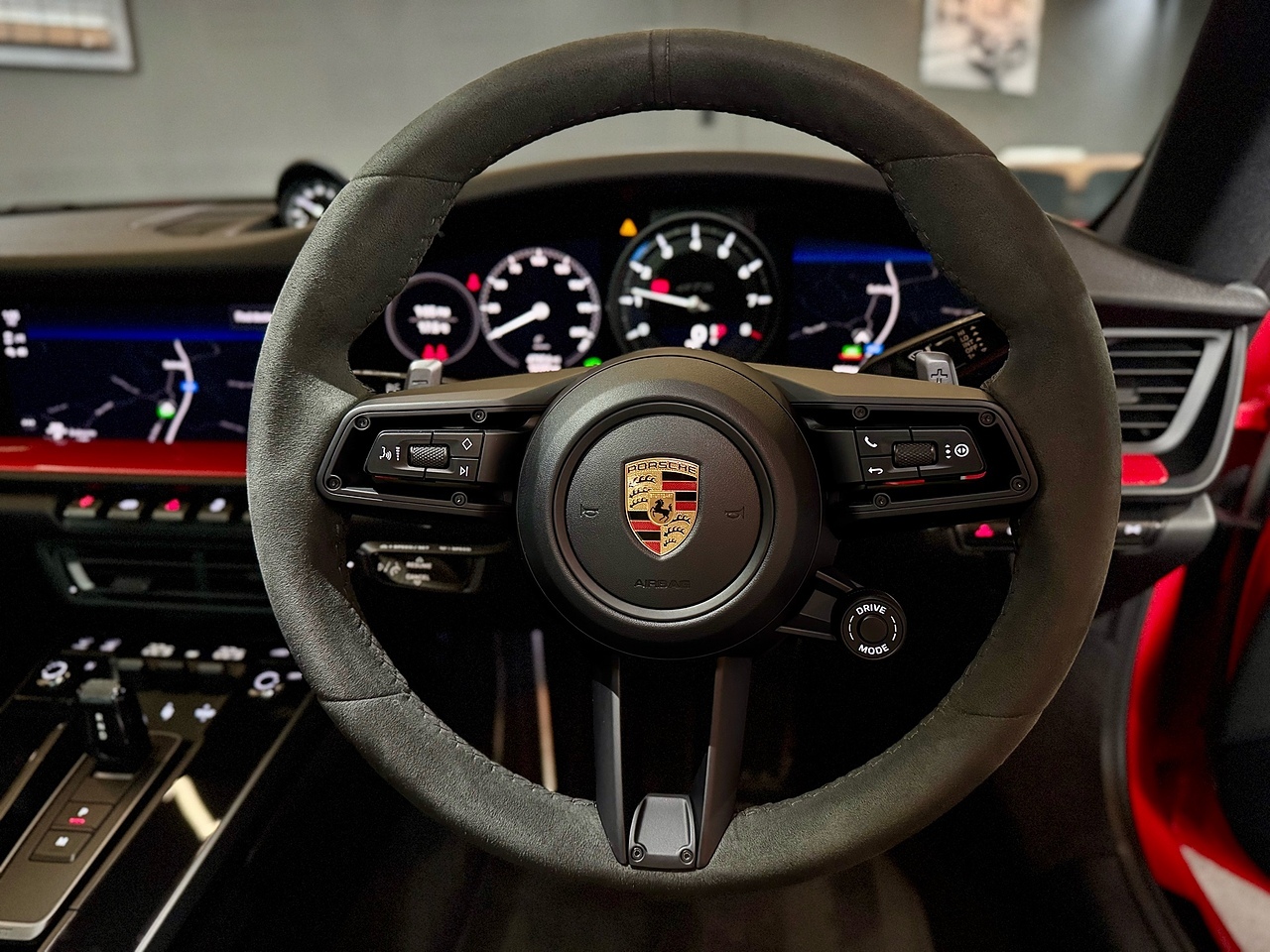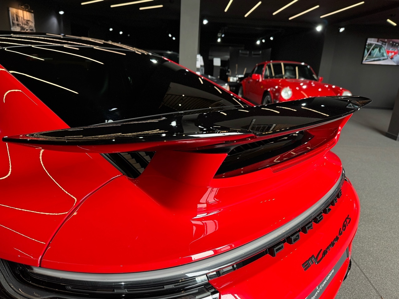 To compliment the Guards Red exterior paint, the car also features a High Gloss Black exterior Aero Pack and gloss black 20"/21" gloss black alloy wheels. To carry on with the theme, the car also features a gloss black Porsche bonnet decal and the exterior colour interior package.